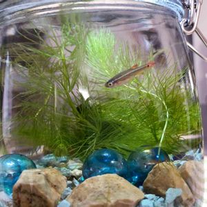 最近水草に興味が出てきたと思ったら、タイミングよく水草コンテスト✨ ルドウィジア、一度溶けて全滅してるので、少しずつ成長してるのが嬉しいです。 エビちゃんもいます。