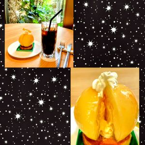 今日のオヤツ 丸ごと桃🍑のケーキ アイスコーヒー🧉 何時も行くカフェレストランで