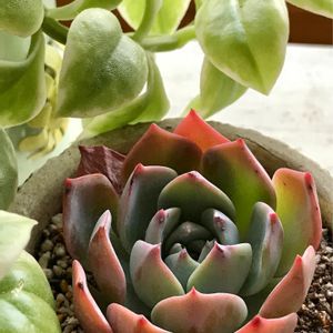 我が家に来て10年以上になるベビーサンローズちゃん。多肉植物とは知らず観葉植物として育てて来ましたがGSの皆様から教えて頂いて今年の夏頃から外に出してみました。 植え替えもして、チョッキン✂️もしてリニューアル💕 そしたらほんのりピンクになってきた❣️しかも斑も入り可愛すぎる。嬉しいなぁ〜 今考えると多肉植物の存在すら分からなかった私ですが、潜在的に好きな植物だったんだなぁーと今朝しみじみ思います。 多肉が好きだと自覚した私は更に多肉愛が強くなり、もう止まらない😆 来年はお花を見てみたいです。✨ 皆様ありがとうございます😊