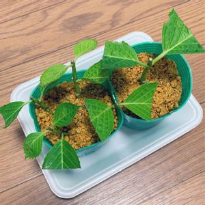 庭に咲いている紫陽花🌸 色が悪くなり始めた花の枝をカットして、これも挿し木にしてみました🌱 今のところ脇芽が無いけど...ちゃんと育ってくれるかな🙄