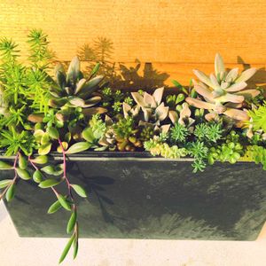 20200410 多肉寄せ植え。 冬の間にチマチマ植え込んでたら 一気に成長してモリモリに^_^ グリーンが過ぎるな、、。