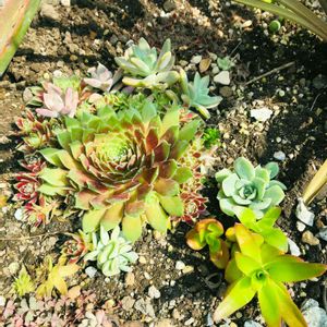 20200508 センペルビウム。 地植えしてみたら 子供がたくさん! 色々ばら撒いてた多肉達も 大きく育ってました^_^ かわいいなぁ♡