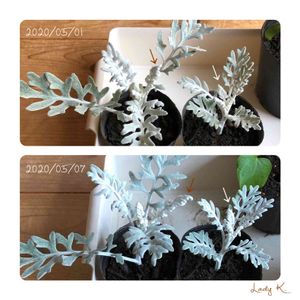 シロタエギクの挿し芽、新芽が伸びました✨ 実は2日前から葉が伸びてる?それとも勘違い?ともやもやしていたのですが、写真で比較したところちゃんと伸びているように見えます☺️ 写真だと分かりにくいですが、新たな芽もちっちゃく出てます 新芽が伸びてくるのは根が張りはじめた証拠らしいので、レースのカーテン越しに日光に当たる位置に移動しました。 みどりのまとめ[シロタエギクの挿し芽]にこれまでの過程まとめています🌱