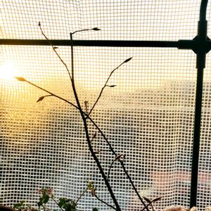 20200110 ネコヤナギ。 しめ飾りから抜き取り、 挿し木中です。 温室の中で 朝日に輝く。 美しい^_^