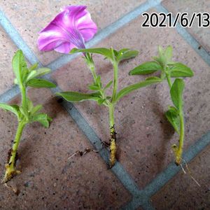 5月下旬に挿し芽をしたペチュニアブルーベリージャムとラズベリージャム。 初挿し芽、成功しました🔰💕 ラズベリージャムの方は元気ですがブルーベリージャムの方は成長遅めです。 これからも色々挿し芽で楽しみたいと思います🥰