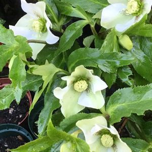 クリスマスローズ シングル ホワイト やっと真っ白ちゃん見つけました 元々は白だったのに 実生は色んな子が出ます😊🍀
