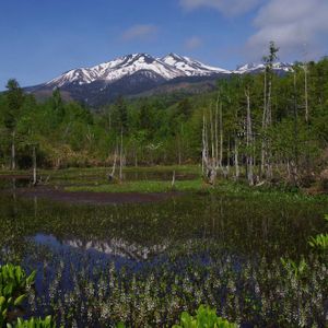 乗鞍高原のミズバショウ、リュウキンカ 📸 5月23日 ①ドジョウ池の水芭蕉 花は終わっていました 後方の山は乗鞍岳 ②③オソメジッケの水芭蕉 ④オソメ池で ー 立金花