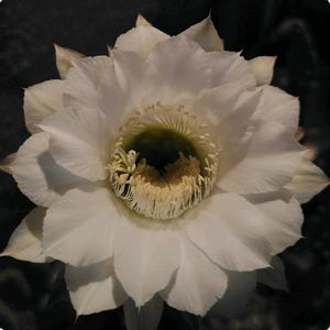 エキノプシス オキシゴナ🌵 昨夜 7月に2輪咲かせたサボテンが またまた1輪咲きました 夜のサボテンの花 幻想的でした (*˘︶˘*).。*♡🤍💚