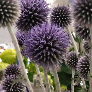 2年目にしてルリタマアザミの花が沢山上がってきました😄 うっすら紫色になってきました。