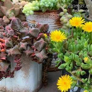 タニ友さんに頂いたヌビゲナム❤️ 色が冷めてきたけど可愛い花🌼が咲きました😊 先日イベントでご一緒したバビちゃんのリメ鉢にIN💕