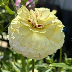 今朝撮影📸 ラナンキュラス ラックス ニノス🤍 ラックスは花の色の変化が楽しい😆 外の花弁は写真より白く中央はまだ緑です 真ん中の差し色が見えてきました✨ この状態はまだ咲ききっていないのかな🤔 花弁が多いのでボリュームがありますね♪