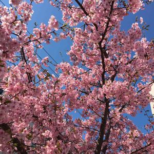 ポカポカ日和💕 スーパーの敷地内にある河津桜も満開です💕💕 お客さん達もつい📸パチリ❣️
