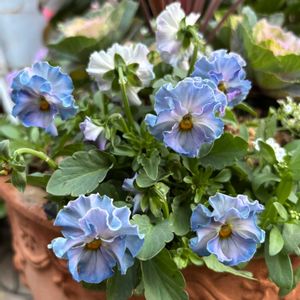 こんにちは🌿 今日のお花さん達🌸 パンジーフェデネージユ見つけて作った寄せ植え💐 元気に育ってくれるといいけど🪴 今日も素敵な休日を🍀