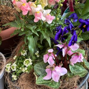 こんにちは🌿 少し前に作った寄せ植え💐 シクラメンの中ではこのペチコートが花持ち1番いい様な気がします🌸 シクラメンペチコート以外は 98円のお花🌱🌱🌱 寄せ植えテキトーだけど どのお花も可愛い〜🥰❤️ 今日もお疲れ様でした💕