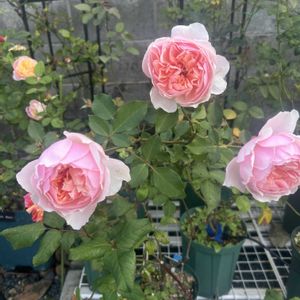 昼間の薔薇🌹 🌹クロード、モネ ピンク、イエローの絞りが可愛い💕 🌹ラフメイカー 色も深くなり、切り戻したら 又、咲いてくれます優秀な🌹❤️ 🌹シャドウオブザムーン 3つ子ちゃん、先進み具合がわかります✨