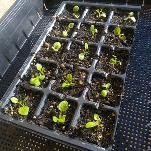 救える命は救ってしまう こんにちは 今回も小さな豆腐パックの容器に ロベリアを蒔きました ひとつまみのその半分 それでも物凄く良い発芽率 13苗セルトレイ上げし 鉢に定植したり黒ポットに あげたりしたのですが それでもフサフサと苗が余ってる・・ 毎回まだ体力的に大丈夫と余分に育てても 育てきれず身体も疲れてしまい・・ の繰り返しなのですが 育苗棚に置いてある豆腐容器を今回も無視できず・・ 本日15苗のみですが セルトレイ上げしました 土が少ないのは 種蒔き玉葱のセルトレイの下に 敷いてあったものだから ロベリアは寒ささえ気を付ければ 初夏とても美しい濃紺の花を 咲かせてくれるので それを想像すると 育てられるものは育てたいと 作業に取りかかってしまいました 何年経っても学習しない私です😅