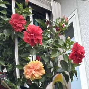 こんにちは🌿 今日のお花さん達🌸 八重咲ハイビスカス🌺 3色丼なんだけど 今日は2種類4輪のお花が咲きました🌺🌺🌺🌺 今日もお疲れ様です💕