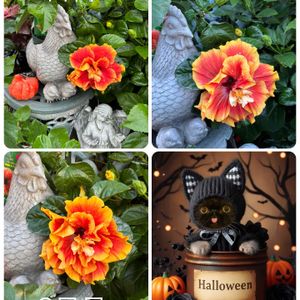 おはようございます🌿 今日のお花さん🌸 3日咲いてるハイビスカス🌺 高松商事さんの ロングライフシリーズ アポロダブル 我が家の 紫音(しおん)くんと🐈⬛ 花色薄くなるけど とっても綺麗に3日間咲き続けてくれてます🌺 今日も素敵な1日を お過ごし下さい💕