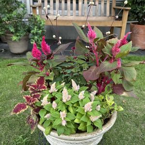 秋の花 寄せてみました まだ、園芸店もHCも品薄 ケイトウモリモリで 秋を感じる🍂