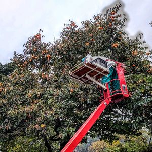 先日高所作業車に乗って 主人が高い場所の収穫した渋柿を干し柿にしましたよ コンテナ10箱以上有りました。友人達に貰って頂いて残りを数日前から 皮剥きして干しました。 まだまだ残ってますけれど 本日は雨降り皮剥き作業はひとまず休憩です。 渋柿の皮がコンテナ一箱 一杯になりました。 残りは晴れの日迄お休み 😊