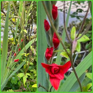 今日のお花、グラジオラス🍀 今年もまた会えました😄 お隣さんとご近所さんの赤いグラジオラス❤️💚 遠い夏の思い出と、リンクするお花です❤️😊🍀💕 1️⃣2024/6/11 2️⃣2024/7/26 撮影🍀
