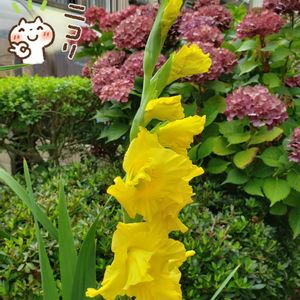グラジオラスの黄色💛がさいでした、雨の止みまに、パチリです。🤗