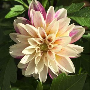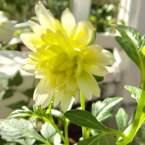 背が小さめで、小ぶりのダリア ミルキーな白の花びらがかわいい✨