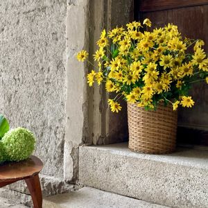 ヘリアンサス 初夏から庭に明るく咲いている ヘリアンサス (群生しています) 「姫ひまわり」なんて可愛い名前もある 蔵カフェの土壁に映えてキュートな雰囲気にしてくれる 花を.緑を愛して止まないワタクシです🧙♀️