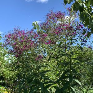 夏庭 ①バーノニア ②トウゴマ ③ルドベキア ④ムクゲが出迎え 夏の花盛りです