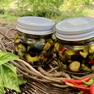 ナス🍆のオリーブオイル漬け ①毎年のオリーブオイル漬け ②ガーデン ハックルベリーのジャム 地産地消 収穫物をそれぞれにするには 手間がかかる 信州の方言で 「ずくがいる」… まさにスローライフは忙しい!