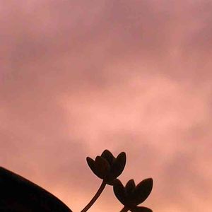 台風の被害にあわれた方々へお見舞い申し上げます 空の色や雲の形に季節の歩みを感じます 柔らかに流れるような波打つような夕焼け雲と水栽培のオリヅルラン