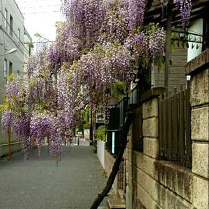 いつもと違う道を通ったら、藤の花が咲いていました🌼 よく見たら、お庭から伸びてるんじゃないわ~~。 スッゴい生え方してますな~~🎵😃