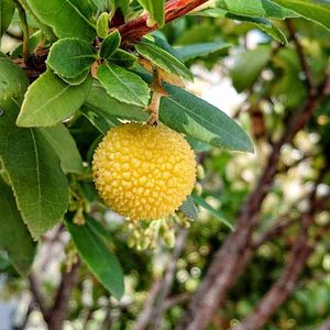 今日の散歩🚶♂️ 日の出桟橋🛥️ イチゴノキに実も なっていました🎵 まだ黄色です💦
