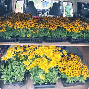 ペチュニアたちが今年は絶不調で💤カリブラコア&ビスタいがい丸坊主にカットしました✂️ さみしくなってしまい新苗さん増えました❤️ 左から… ルドベキア ガイラルディア ダズラー ルドベキア オータムカラーズ エキナセア