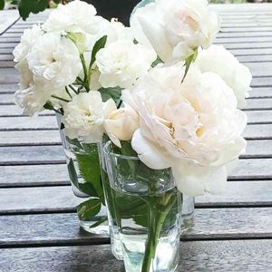ここ3週間の日照時間が東京近郊では平年の半分だったとか… 我が家は水はけが悪い所に🍄がはえるようになりました😖 たまたまなのか、いま咲いているバラは白ばかり。ボレロとグリーンアイスとアルテミス、どれもスモールサイズです👶