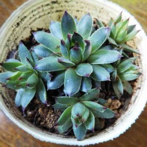 多肉盛り合わせ 朧月がいつの間にか大きくなってセンペルピュームからライナーも出て思いがけず上手に育ちました。後ろに虹の玉いるんですよー! もう一鉢多肉でつくろうかな。