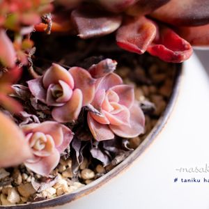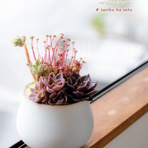 仕立て直しました゚+(人・∀・*)+。♪ 先月まではぼろぼろだった、ブラックローズ&紅稚児寄せ。 バランスが悪くなった下葉をとり、形を整えたら、なんと可愛くなったこと。 仕立て直し、大事ですよね。 紅稚児さんも咲いてる。 丸くて可愛い花です(*^。^*) 樹霜さんも咲いてます。 びょ~んとなっちゃってます。 【masakoの多肉No.45】