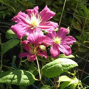 ちょっとごちゃごちゃ(^^;; 誘引に失敗した件💧 薔薇 スヴニール ドゥドクトルジャメインはほぼ真上に向いて、お花がよく見えないし、クレマチス 白万重とワルシャワ ニキは 誘引するのが間に合わないくらい、あっと言う間にビョーンと伸びてごっちゃごちゃΣ(-᷅_-᷄๑)