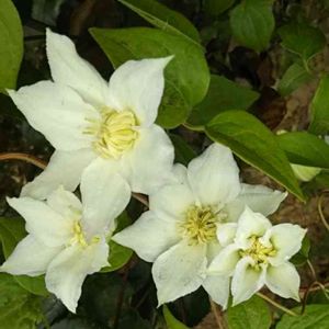 クレマチス アルバラグジュリアンス。 派手派手なバラの開花が一段落した今、これくらい地味で大人しいこの子が可愛くてたまらん(〃ω〃)