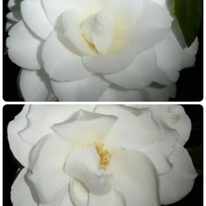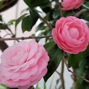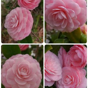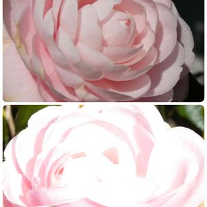 お隣家の八重椿 毎年ぽってりと綺麗な花姿を見せてくれます。 変わり咲の子を発見👀✨ ちょっと不思議です