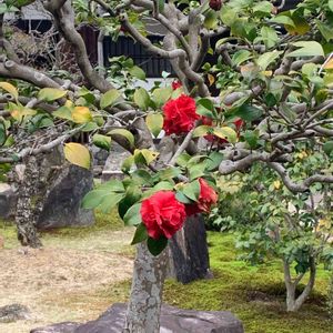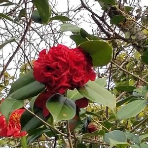 花畑の椿が、咲きました 一年ぶりに、会えたね❣️ 真っ赤な太陽❤️ たくさん、咲かせてね‼️