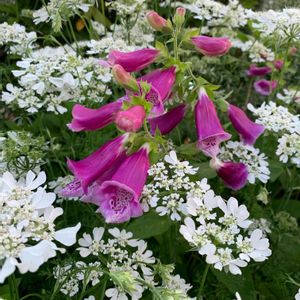 真っ白なオルレア ホワイトレースのお花とピンク色のジキタリスのお花さんが可愛く寄り添って✨🎶 レースという名の通り繊細なお花で美しいです💕 今日のお花イベリスと迷いましたが、花友さんのご意見も参考に、葉っぱなど再度調べた結果、オルレアのお花と判断しました❣️ 2020 4月 過去picより