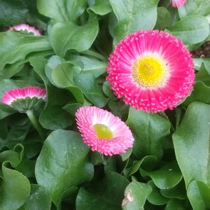 今日のお花 「デージー」 1月にお迎えした、デージー (チロリアンデージー)沢山咲いて来ました。💞 嬉しいです。🎵😍🎵 ピンク色と赤をプリムラマラコイデスの白と一緒に植えて見ました。 買った時は、1輪ずつしか咲いていませんでしたが、こんなに沢山咲いて来ました。💞 プリムラマラコイデスも、満開に成りました。 綺麗です。🤍🌿 東側玄関前に置いています。 夜は、玄関内に入れています。 玄関前は、朝30分~1時間位しか日当たり有りません。 今、ビオラなど、5鉢置いています。 みんな、頑張って咲いてくれています。🌸🌼🤍💗❤️ ありがとう、お花達🎀💝 ガンバレ・ガンバレ🚩😃🚩