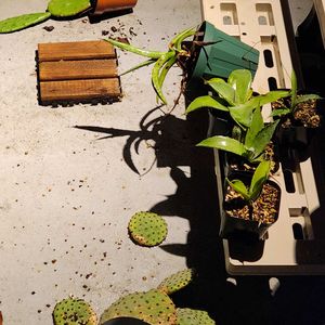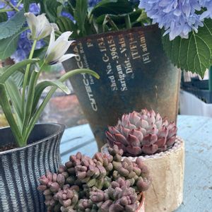 1枚目 今日は、穏やかに晴れ☀️て、玄関内の多肉もウッドデッキで日光浴💕 2〜4枚目 実は昨晩は、夜遅く強風🌬️が吹き、朝起きると、ビニール温室の1つが倒れ、中のポットがたくさんひっくりかえっていました😢 倒れたビニール温室は、2段で多くは、葉挿しっ子が植ったポットでしたが、土がこぼれ、多肉も名札📛もばらばら。いくつか7Cになってしまいました。つけられない名札が20近く余ってしまった… それでも、たまたま日曜日で、土に埋まった子たちもその日のうちに救出できたからまっ、いいか。 🏷️ポジティ部♡
