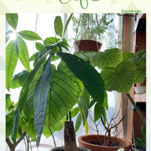 窓辺の観葉植物🪴たち。 パキラの小さな🌱新芽が、 出てきました。