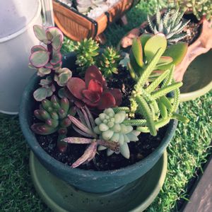 葉挿ししたものが沢山大きくなったので、寄せ植えをしてみました。徒長してカットしたものも使ってあります。(^∇^)💕🎶 もう、台風の影響が出ているところもあるのではないでしょうか。近隣の小学校は、明後日が運動会の予定のところが多いようです。たいへん。😨 今度の台風は、勢力が強いらしいので、本当に心配です。被害が出ないことを祈ります。 できる対策はしておかなくては。 頑張れ❗日本‼️