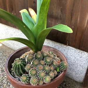 共存共栄⁉️ 思わず振り返って見直しました(笑) 多分、7年経つかな… 亡き母が置き場所に困り、チョコンと置いたのかな… 君子蘭も頑張った😥 せっかくだけど、植え替えます🌿