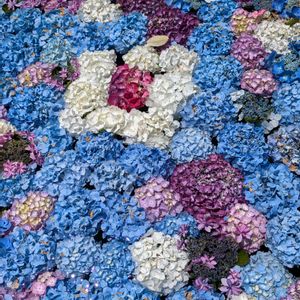紫陽花 墨田の花火の周りは 何かカラフル🌈✨ 鉢植え紫陽花寄せは 今年真ん中が咲かない💦 庭の紫陽花もその現象が…… 来年、真ん中咲いて 次の年周りが咲いてのルーティンかもしれないꉂ🤣