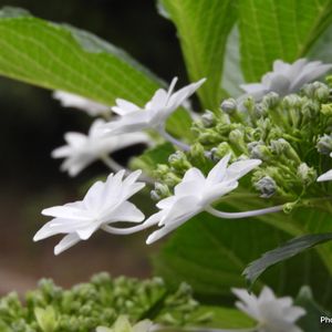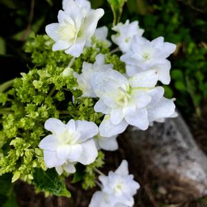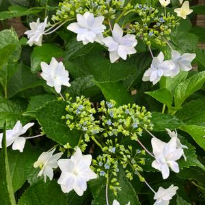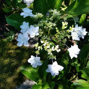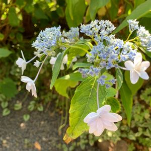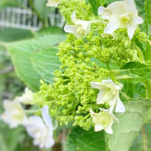 近くの神社に咲いていたあじさいです。名前が分かるかた教えて下さい。