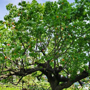 お出掛け先の空き地に、 立派なアンズの古木、 発見🧐 沢山の美味しそうな実を 付けていてました👍